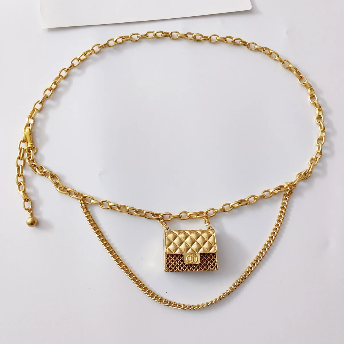 Fashion Tassel Gold Chain Belts For Women High Quaity Luxury Ear Phone Small Bag Metal Belt Adjustable Long Waistband Mini