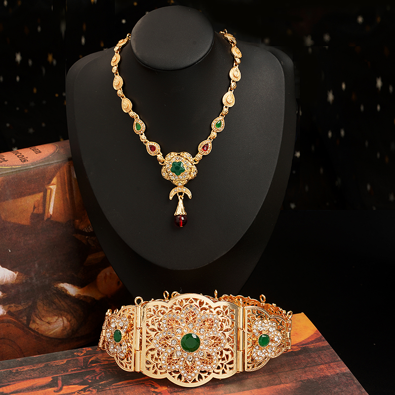 Moroccan Chic Caftan Belt Gold Color Red Green Stone Algeria Wedding Dress Kaftan Abaya Arab Waist Chain Belt Jewelry
